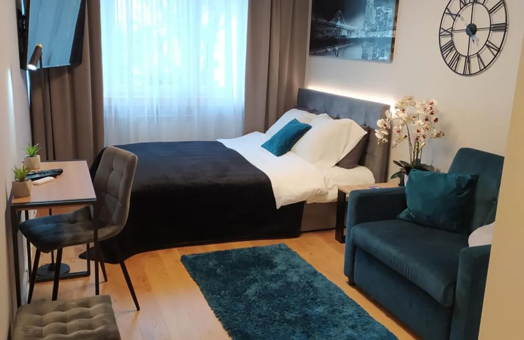 The 1-room Przytulne Apartamenty W Poblizu Szpitala Uniwersyteckiego Krakow Prokocim apartment lies 3.6 km from Sanctuary of Divine Mercy.